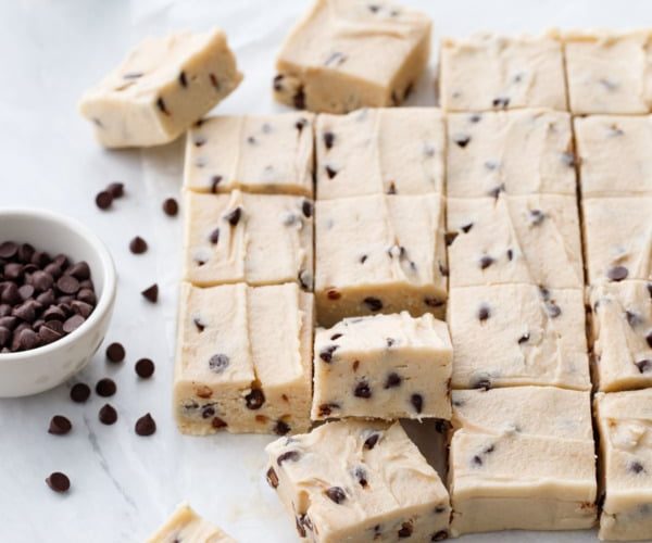 If you’re obsessed with cookie dough like I am, you’re going to want to make this recipe STAT. It’s literally a slab of cookie dough flavored-fudge, but without the worry of raw cookie dough since it’s made without eggs and with heat-treated flour.