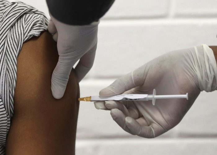 In this Monday, March 16, 2020, file photo, Neal Browning receives a shot in the first-stage safety study clinical trial of a potential vaccine for COVID-19, the disease caused by the new coronavirus at the Kaiser Permanente Washington Health Research Institute in Seattle.