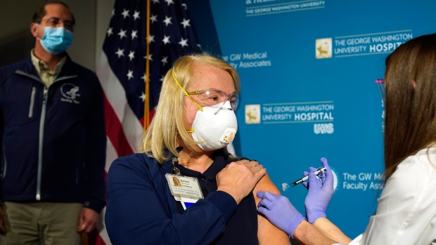 The largest vaccination campaign in U.S. history got underway Monday as health workers in select hospitals rolled up their sleeves for shots to protect them from COVID-19 and start beating back the pandemic – a day of optimism even as the nation’s death toll neared 300,000.