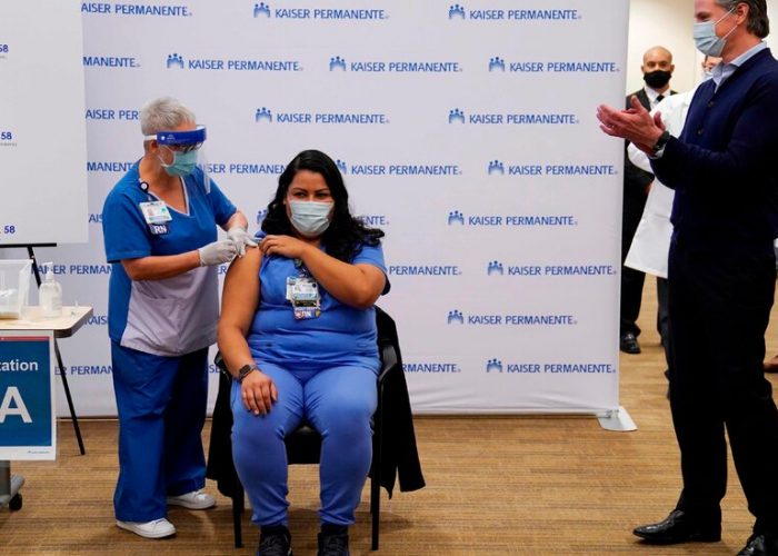 Mr. Newsom, who spoke outside the Los Angeles hospital early Monday afternoon, said that some 33,000 doses of the vaccine arrived in California and had been distributed to sites around the state. (He added the grim observation that that was roughly the number of new virus cases reported on Monday.)