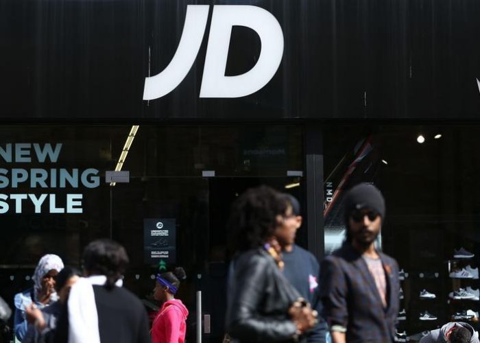 FILE PHOTO: People pass a JD Sports store in London, Britain April 11, 2017. REUTERS/Neil Hall/File Photo