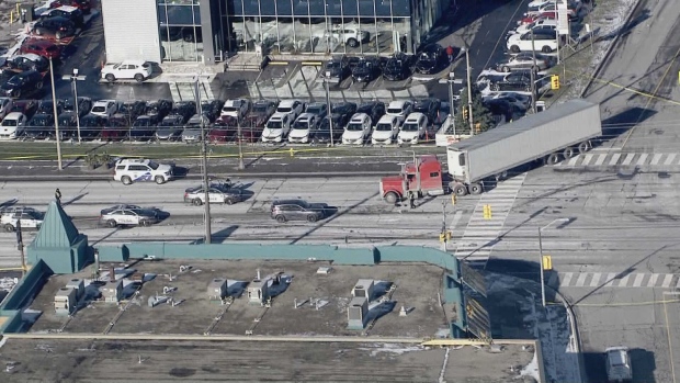 Emergency crews were called to the intersection of Lawrence Avenue East and Underwriters Road, west of Birchmount Road, just before noon.