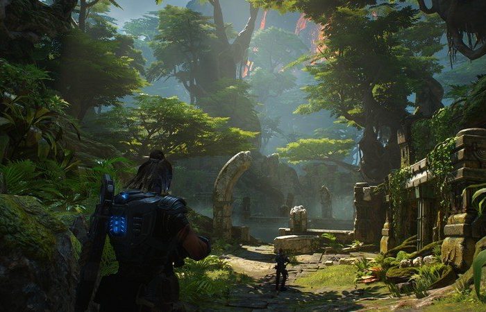 The team at The Coalition refined already-excellent HDR implementation even further with the jungle setting, even appearing to draw inspiration from games like Monster Hunter World. Ice and red sand are exchanged for dense overgrowth and active volcanoes, which never failed to look appealing.