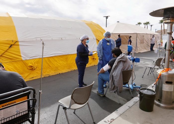 On the West Coast of the United States, Californias overwhelmed hospitals are setting up makeshift extra beds for coronavirus patients, and a handful of facilities in hard-hit Los Angeles County are drawing up emergency plans in case they have to limit how many people receive life-saving care.