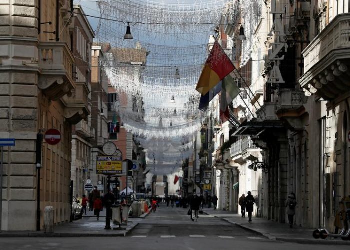 People walk along Via del Corso, as Italy goes back to a complete lockdown during Christmas season as part of efforts put in place to curb the spread of the coronavirus disease (COVID-19), in Rome, Italy, December 24, 2020. REUTERS/Yara Nardi