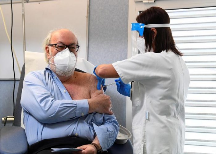Dr. Massimo Vajani 67, receives the Pfizer-BioNTech COVID-19 vaccine against the coronavirus disease at Civico hospital, where the country’s first patient was diagnosed, in Codogno, Italy, December 27, 2020. REUTERS/Flavio Lo Scalzo/Pool
