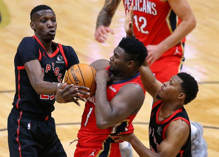 Nine Clunky: The Raptors had great success last year by playing an aggressive style of defense that often called for their centers to pressure the perimeter. So far its not working nearly as smoothly with Baynes and Len as it did with Gasol and Ibaka. Nurse sent double teams at Ingram to force the ball out of his hands, and the Pelicans simply carved them apart with Adams rolling down the floor while the 34-year-old Baynes was glued to the logo. Torontos best hope this year is to prioritize the paint and to live with the results from the outside. The more inventive schemes might be beyond the defensive talent of this group.