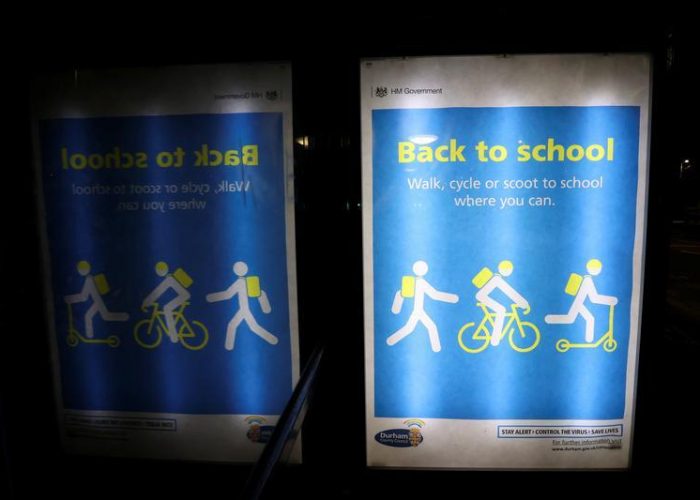 FILE PHOTO: A back to school advertisement is seen inside a bus shelter, amidst the outbreak of the coronavirus disease (COVID-19) in Chester-le-Street, County Durham, Britain December 30, 2020. REUTERS/Lee Smith