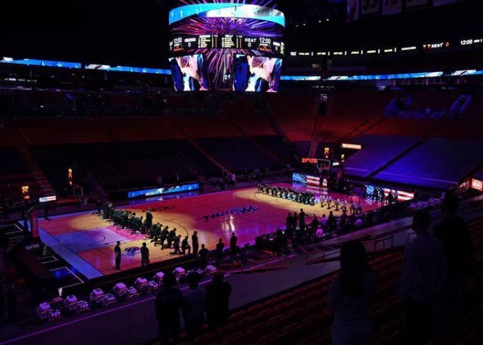 Not long after, play came to a halt moments after the Detroit Pistons tipped off against the host Milwaukee Bucks. All 10 players on the court stopped and took a knee after the opening tip.