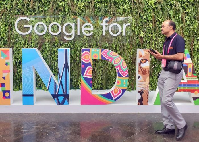 FILE PHOTO: A man walks past the sign of “Google for India”, the company’s annual technology event in New Delhi, India, September 19, 2019. REUTERS/Sankalp Phartiyal/File Photo
