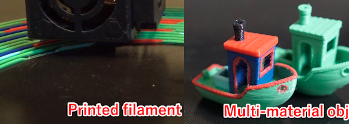 A recent research paper shows a way to create multicolor 3D prints using a single extruder if you are too lazy to babysit the machine and switch filament. The concept: print your own “programmable” filament that has the right colors in the right place. This is the same idea as manually splicing filament but presumably is more efficient since the process works with one color at a time and doesn’t repeat. In other words, to print the 64 squares of a chessboard you’d swap filament at least 64 times on each layer. Using programmable filament, you’d load one spool, print half of the filament, load another spool, print the other half, and then finally load the newly created filament and print the chessboard. Notice that the first two operations aren’t printing the chessboard. They are printing the spool of filament you feed through on the third pass.