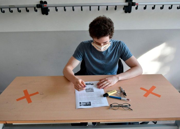 Belgian schools are open but with strict social distancing measures in place. – AFP