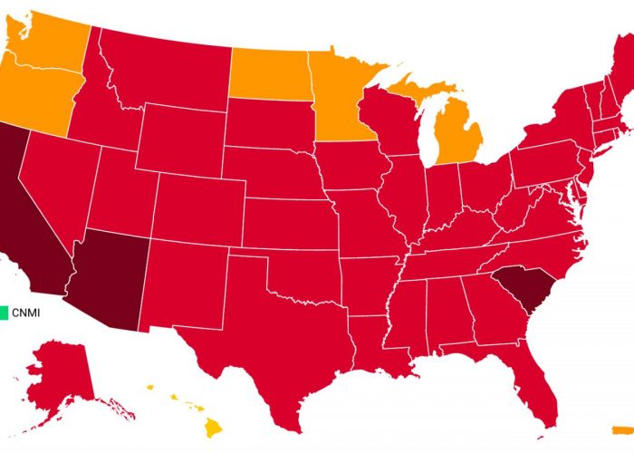 Any number higher than 1 is considered medium and anything above 10 is considered high. A state has reached critical standing if it reports more than 25 daily new cases per every 100,000 residents, according to the group. A number between 75 and (oddly) 113 is considered extreme.