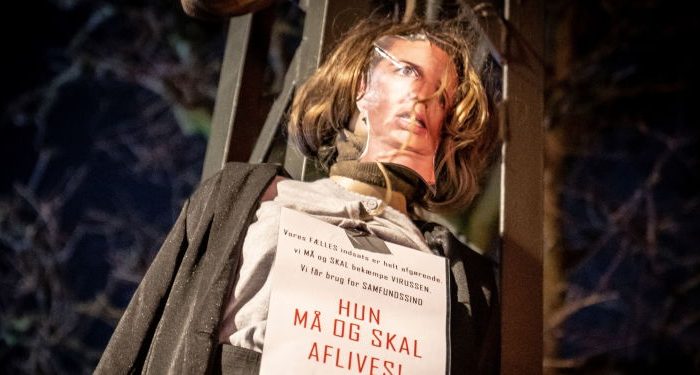 According the the Danish newspaper BT, some 1,000 people gathered to vent their displeasure. Among others, a doll representing Prime Minister Mette Frederiksen was hung on a lamppost. There was a sign on the doll that she should be killed; the protesters later set fire to the doll. Several politicians have reacted strongly to the burning of the doll.