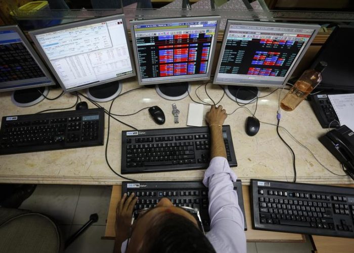 A broker monitors share prices while trading at a brokerage firm in Mumbai May 13, 2014. REUTERS/Danish Siddiqui/Files