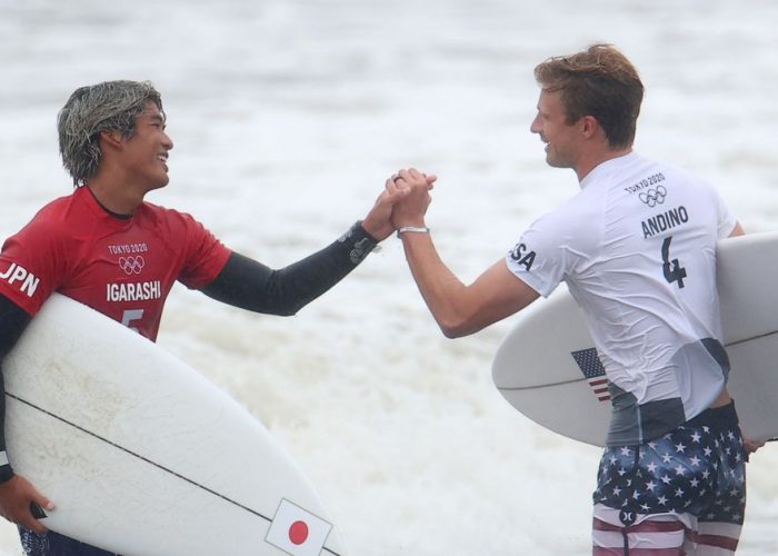 “Today is one of those days when it’s man against ocean, more so than competing against your competitor, but that’s what makes it fun,” Igarashi told reporters.