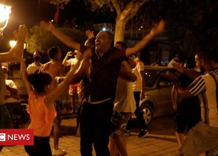 Late on Sunday night, protesters erupted with celebrations at the news Prime Minister Hichem Mechichi had been sacked. President Saied joined crowds in the capital Tunis.