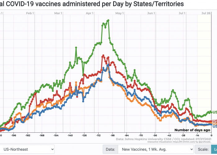 “Spare Us Your Covid Hypocrisy, Republicans” [Joan Walsh, The Nation]. “Republican Alabama Governor Kay Ivey got a lot of attention last week when she urged her constituents to get vaccinated as a new wave of Covid cases crowded hospitals and ICUs…. Ivey herself is partly to blame, for waiting so long to make a vaccine pitch…” • Well, it’s Joan Walsh, so we expect this: