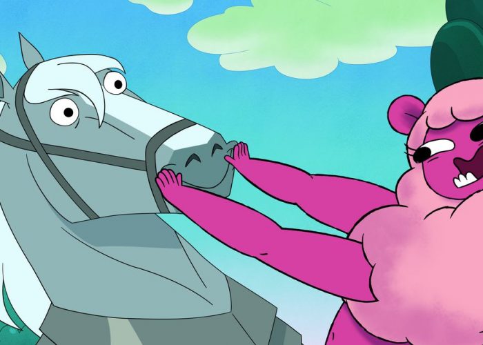 The animation is gorgeous, with a beautiful, subtle difference between the sharp lines and more serious style of the human world Horse is from, vs. the softer curves and brighter colors of Centaurworld. (Not to bring up an old debate, but think the original Teen Titans cartoon vs. Teen Titans Go!) Its a clever distinction, making Horse, with her angles and more realistic style, look sharply out of place in the bubbly Centaurworld. But the cuter design of Centaurworld doesnt mean life there is all sunshine and rainbows. The overly saccharine visuals everything is sparkly and big-eyed and silly! thinly mask the often dark and sometimes gross nature of the land.