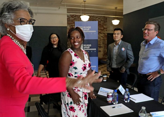 The entrepreneurs are graduates of the Goldman Sachs 10,000 Small Businesses program, which provides greater access to education, capital and business support services. The event was part of the 10,000 Small Businesses Voices initiative, which helps small business owners advocate for policy changes.