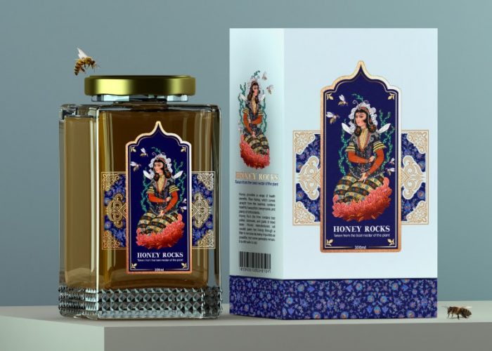 Good honey is always obtained from the nectar of the natural flowers that the bee uses to make honey, and the queen, as always, is in the center of the bee’s attention to get the best, so I designed this design from a combination of intertwined flowers with different colors with traditional motifs and also placed several bees around the flowers to uses of flowers nectar.