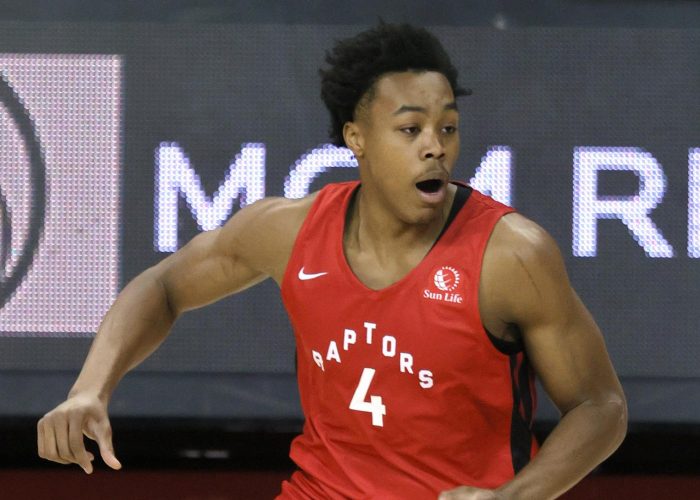 Two Chippy: It was a physical battle between lottery picks Scottie Barnes and Jonathan Kuminga, who are both towering athletes that aren’t afraid to mix it up. Kuminga and Barnes seemed to relish going at one another, with Kuminga having the slight edge in how he was able to impact the game. Barnes started strong with a corner three off a rare passing sequence by the Raptors, but he fell behind the rhythm of the game for extended stretches, while Kuminga relished every opportunity to force the issue, which largely highlights the difference between the two talented forwards. Barnes initiated more in the second half, where he was able to handle it, beat Kuminga’s full-court pressure with his smooth handle before getting in the lane to draw fouls.