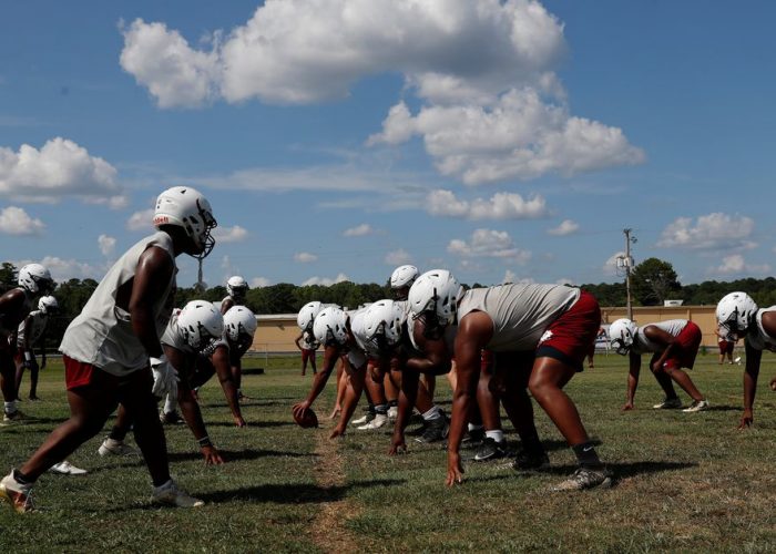 Players wore helmets but no pads to try to escape the heat, running through drills ahead of the opener at the end of the month. The date marks a highlight on the calendar for this American football-loving town of about 4,000 people in southern Arkansas, where banners celebrating the Fordyce High School Redbugs hang along its main street.