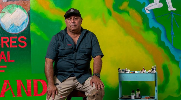 Simmons deploys Klan imagery as well. He spoke of the dangers of using such symbolism, noting that it can become almost heavy-handed at times. But he recalled the American painter Philip Gustons own hooded figures a focus of recent controversy pointing out, I think that Gustons a master at that,…