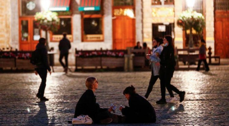 FILE PHOTO: People eat while they sit at Brussels’ Grand Place, as restaurants were forced to close for four weeks, after a Belgian federal government decision in order to tackle a surging second wave of the coronavirus disease (COVID-19) in the country, in Brussels, Belgium October 19, 2020. REUTERS/Francois Lenoir…