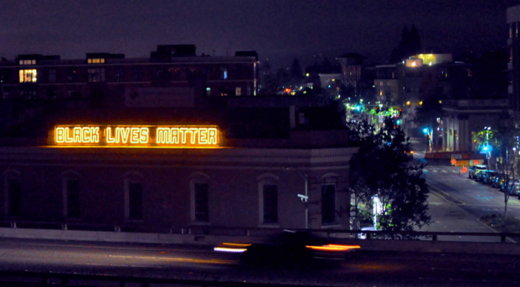 Today tomorrow and everyday. Neon Voices is a large Black Lives Matter, Pi controlled, LED instillation in Emeryville California. Via The E’vill Eye: Spanning 40-feet wide and standing roughly four feet tall, the yellow neon Black Lives Matter sign is mounted atop the ‘City Line’ building on 36th & San…
