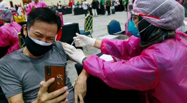 A man wearing a protective face mask reacts as he receives a dose of a vaccine against the coronavirus disease (COVID-19) during a mass vaccination program at the Jakarta Convention Center building in Jakarta, Indonesia, July 31, 2021. REUTERS/Ajeng Dinar Ulfiana JAKARTA, Aug 2 (Reuters) – Indonesia has hit its…
