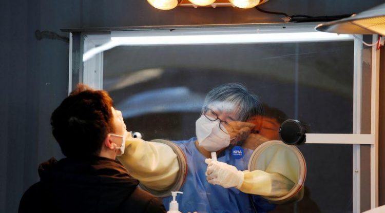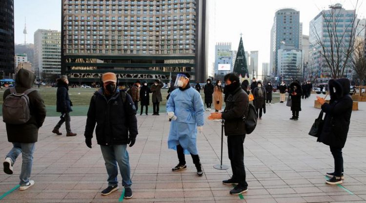 SEOUL (Reuters) – South Korea recorded its highest daily death toll from the coronavirus, health authorities said on Monday, as a surge in infections strains the health system and prompted police raids on venues suspected of violating social distancing rules. People wait in a line to undergo the coronavirus disease…