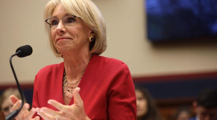 WASHINGTON, DC – DECEMBER 12: U.S. Secretary of Education Betsy DeVos testifies during a hearing … [+] before House Education and Labor Committee December 12, 2019 on Capitol Hill in Washington, DC. The committee held a hearing on “Examining the Education Department’s Implementation of Borrower Defense.” (Photo by Alex Wong/Getty…