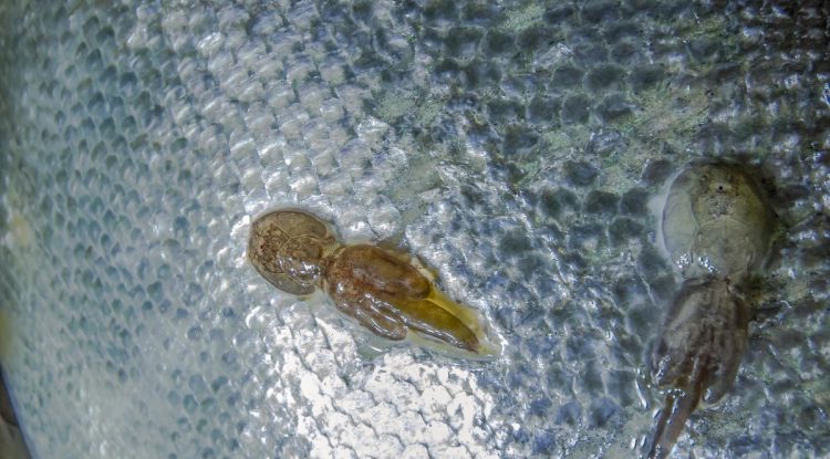Sea lice attached to the skin of a wild salmon. Corbis via Getty Images Salmon farms have been plagued by parasitic sea lice (Lepeophtheirus salmonis) since they were first established in Norway in the 1960s. The small crustaceans attach to salmon skin, fins and gills with tiny jaws and live…