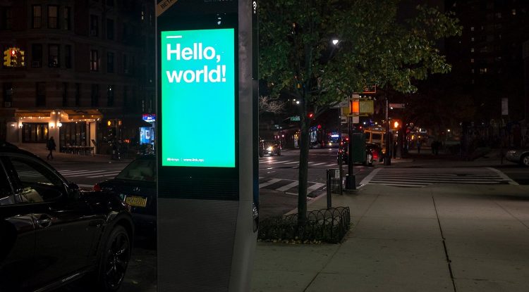 Clockwise from upper left: LinkNYC kiosk. [courtesy Tdorante10 via Wikimedia under License CC Attribution 4.0] Warning, London Transport. [courtesy R/DV/RS via Flickr under License CC Attribution 2.0] Berlin Litfaßsäulen, with memoriam by Tina Zimmerman. [courtesy Tina Zimmerman] Berenice Abbott, Columbus Circle, Manhattan, 1938. [courtesy New York Public Library, public domain]…