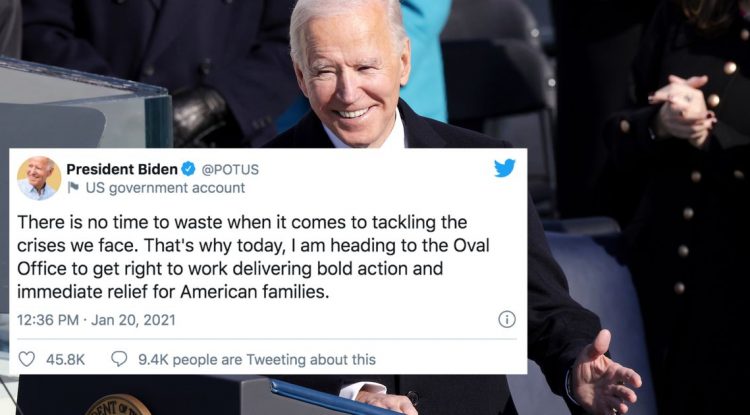 President Joe Biden is officially the tweeter-in-chief. As his inauguration came to an end on Wednesday, Biden dusted off the @POTUS twitter account and fired off his first post as president. And thank the heavens, his tweet was shockingly cogent and normal compared to the past four years of presidential…