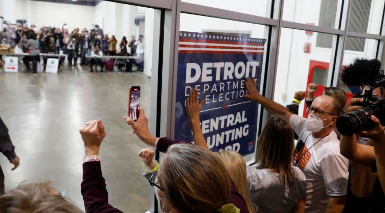 Supporters of President Trump bang on the glass and chant slogans outside the room where absentee ballots for the 2020 general election were counted at TCF Center on November 4, in Detroit, Mich. Jeff Kowalsky/AFP via Getty Images The day Michigan’s electors gathered in the state Capitol, Gov. Gretchen Whitmer…