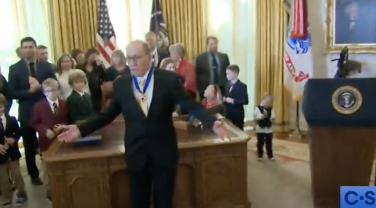 President Donald Trump took the Irish goodbye to an entirely different level on Monday. He ditched Dan Gable, a legendary wrestler, wandering away after draping the sports figure in the Presidential Medal of Freedom. Trump seemingly decided it was time to go when reporters began asking him questions involving the…