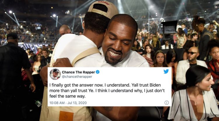 Chance the Rapper publicly and repeatedly tweeted his support for Kanye West’s presidential bid on Monday. Lots of folks weren’t happy. It began with Chance commenting on a new video from his pal Kanye. “And yall out here tryna convince me to vote for Biden. Smfh,” Chance wrote. Being…